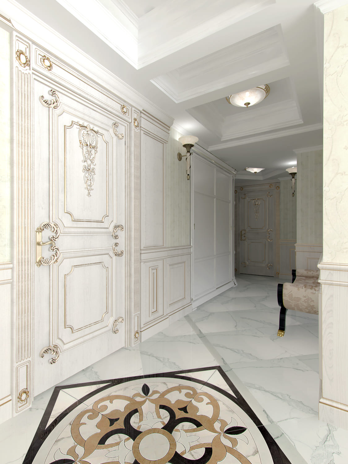 Центральным элементом пространства стала колонна, оформленная в классическом ордере с выразительной капителью.