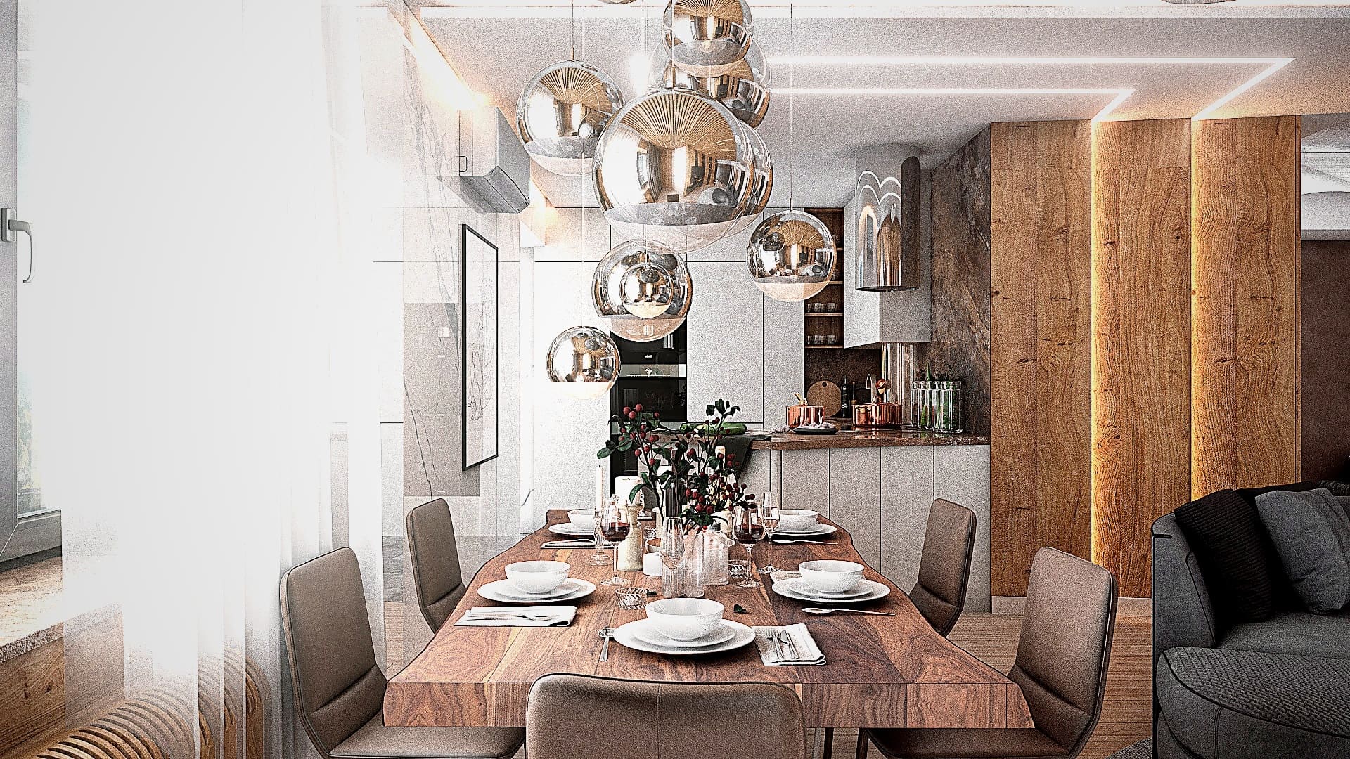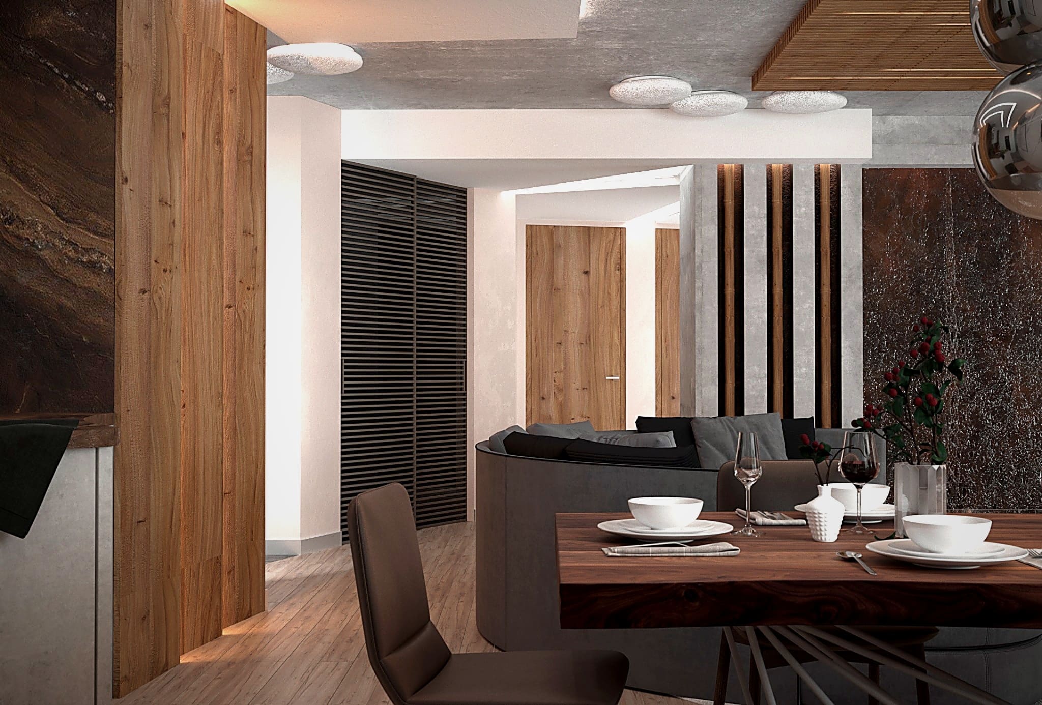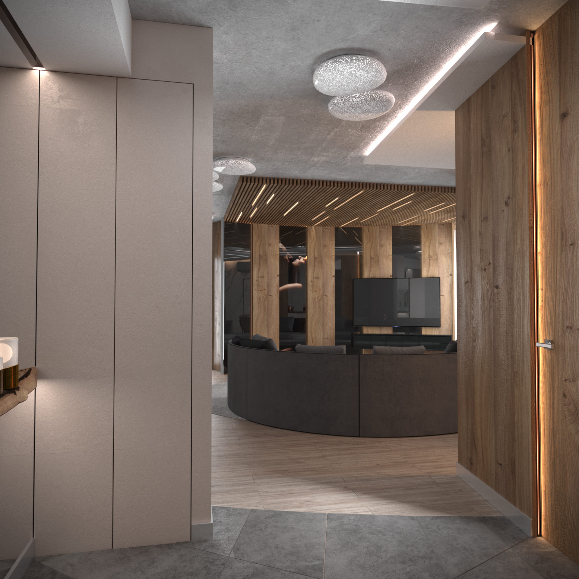 Задачей проекта было создать интерьер, который производит сильное впечатление и не похож на типовые решения. Основой стали натуральные материалы, деревянные панели, каменные поверхности и спокойная современная пластика пространства.